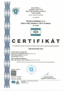 Od roku 2005 jsme držiteli certifikátu systému jakosti ČSN EN ISO 9001:2015.